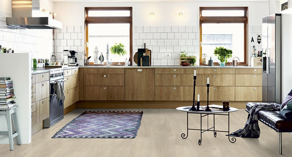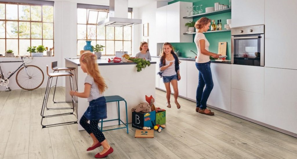 Suelo en Cocina marca PERGO resistente al agua"